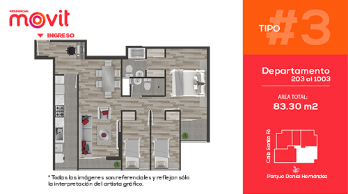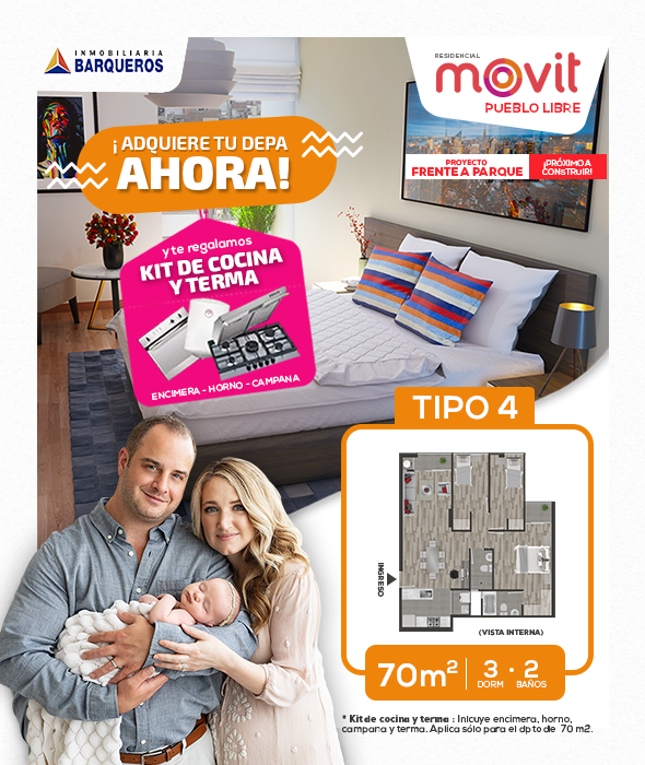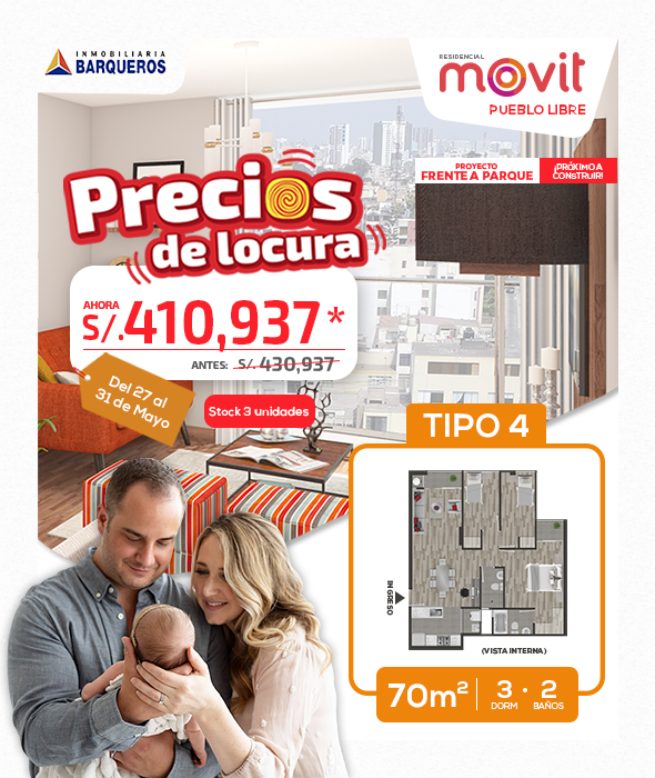 MOVIT es un novedoso proyecto ECO AMIGABLE que contará con 4 PUNTOS DE GAS NATURAL en los departamentos. Ubicado en un lugar más céntrico, permitiendo estar a pocos minutos del lugar deseado. Nos encontramos en PARQUE DANIEL HERNÁNDEZ Nº105 - PUEBLO LIBRE. Frente a un hermoso y amplio parque con buena seguridad y con juegos para niños, donde podrá disfrutar momentos en FAMILIA.